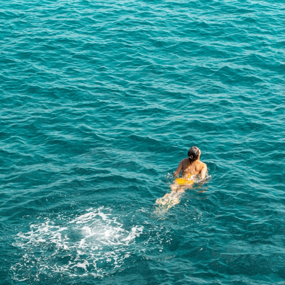 Nada como aquelas fotos na praia de costas para criar uma imagem descontraída e intemporal. Senta-te na areia, de frente para o mar e deixa o momento fluir. É uma das poses mais partilhadas por um motivo: transmite paz, liberdade e conexão com o verão. Para um toque extra, usa um chapéu de palha, um lenço ao vento ou um vestido leve.