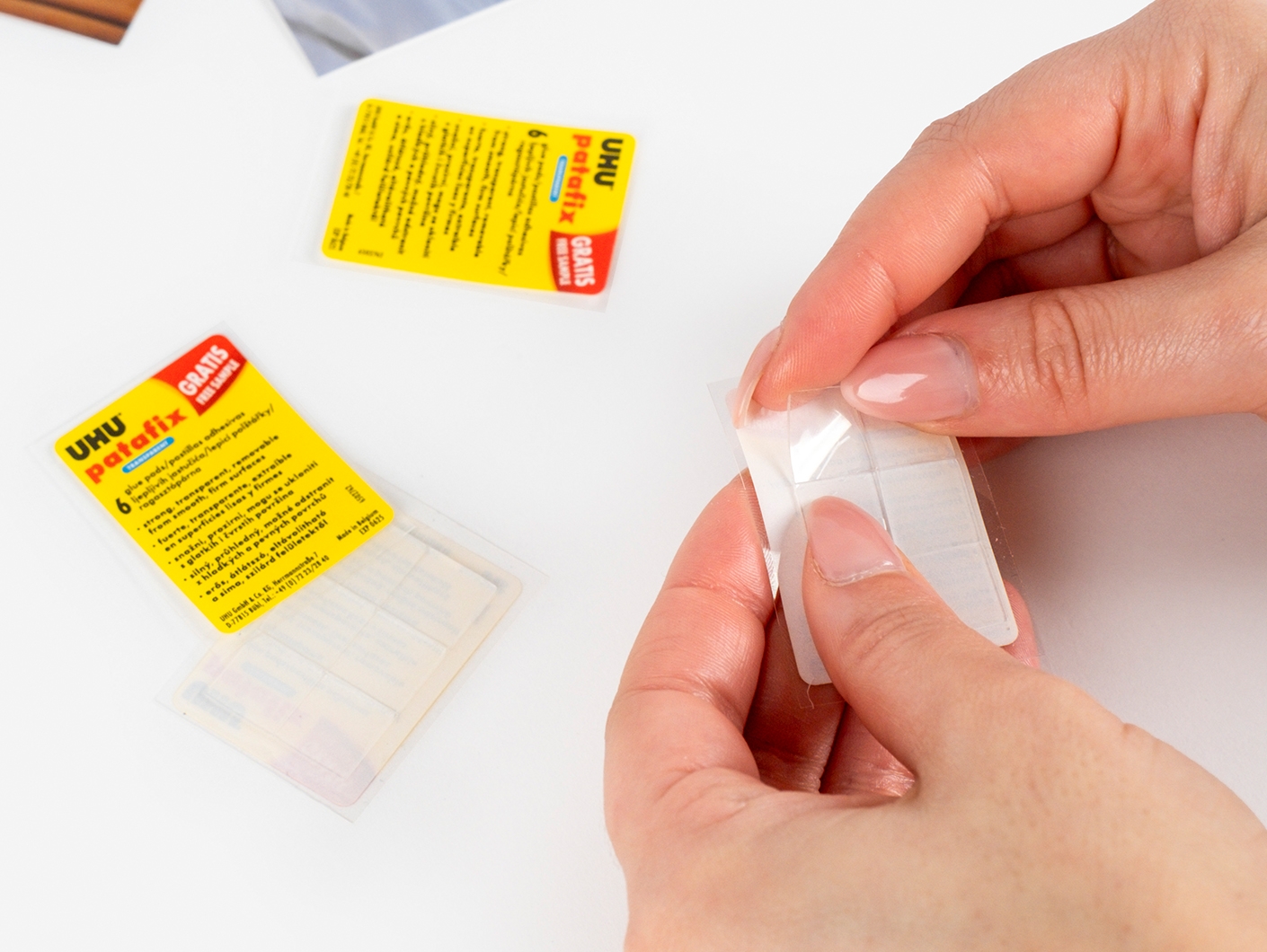 Ao adquirires as tuas impressões em grande formato, receberás gratuitamente Patafix Transparente UHU, a solução eficaz para fixar as tuas Fotos Grandes Formatos nas paredes de tua casa de uma maneira fácil, segura e permitindo-te que reposiciones ou as removas sem deixar resíduos.