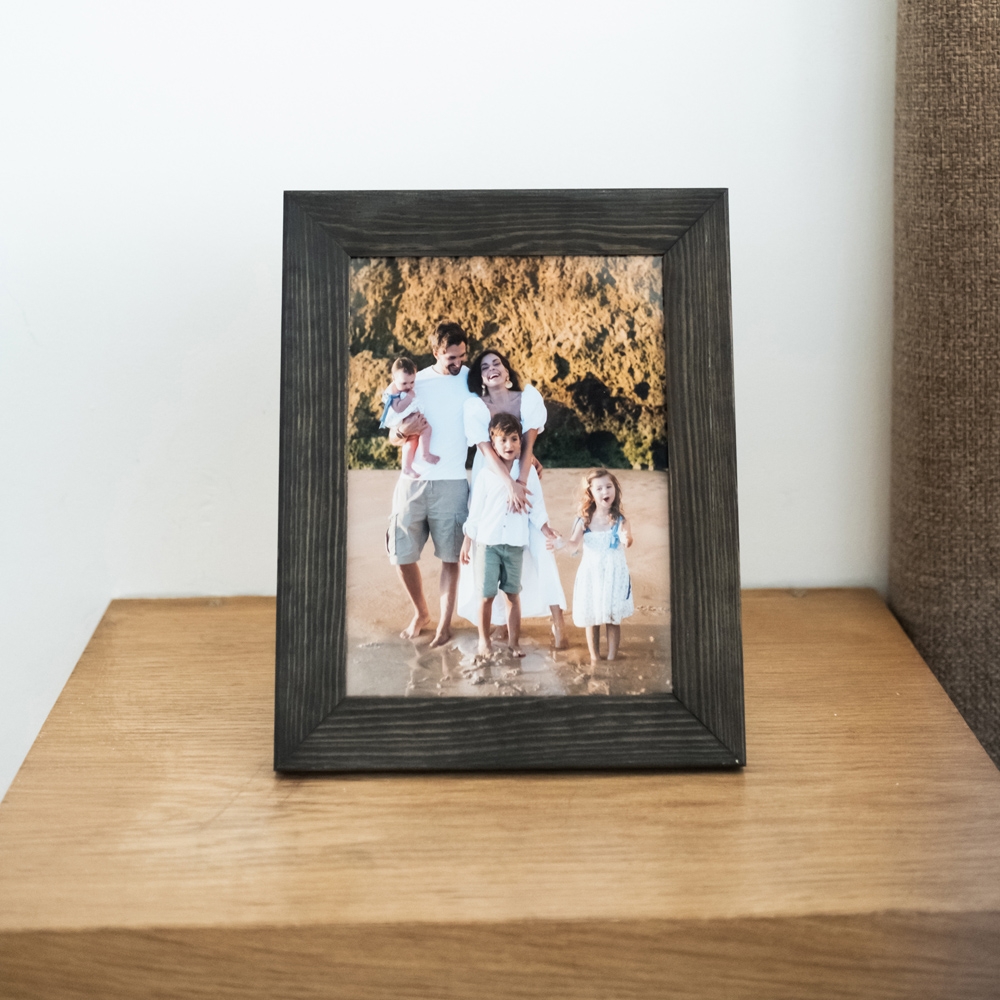 Moldura de alta qualidade, fabricada em madeira, garantindo durabilidade e um acabamento perfeito para destacar as tuas fotos.