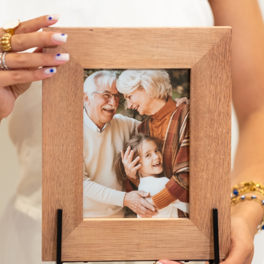 Moldura de alta qualidade, fabricada em madeira natural, garantindo durabilidade e um acabamento perfeito para destacar as tuas fotos.